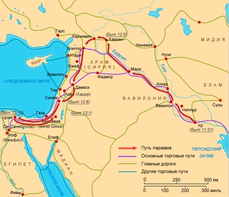 Авраам совершил трудное и опасное путешествие из города Ура в Вавилонии через земли Плодородного Полумесяца к Харрану, а затем в землю Ханаанскую. Позднее он вынужден был спасаться в Египте от разаразившегося голода (Быт. 11:31 – 13:18). Со своим семейством, овцами и козами Авраам вел кочевую жизнь на холмах и равнинах Ханаана, своей новой родины (Быт. 14–25). Его внук, Иаков, кончил свои дни в Египте вместе с любимым сыном Иосифом (Быт. 37–50).